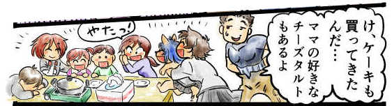 パパ 「ケーキも買ってきたよ…ママの好きなチーズタルトもあるよ」