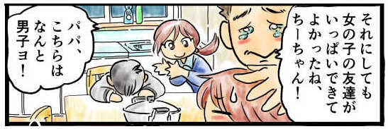 ママ 「パパ、こちらはなんと男子よ!」