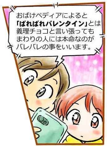 AI 「おばけペディアによると”ばればれバレンタイン”とは義理チョコと言い張っても、周りの人には本命なのがバレバレである事をいいます。」