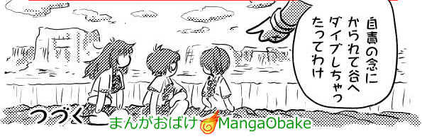 「自責に念に苛まれて彼は谷へとダイビングしちゃったってわけ。」