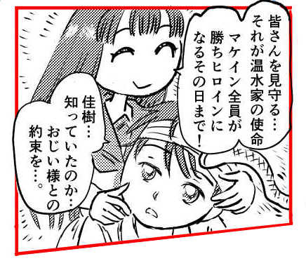 「温水家の使命」 …さすがにどなたも覚えていないと思いますが、 妄想77の幼少期のぬっくんとおじいちゃんの会話の事だったりします。 うんなの覚えてるかいっ! ごもっとも~(汗) めんどくさいマンガですみません~