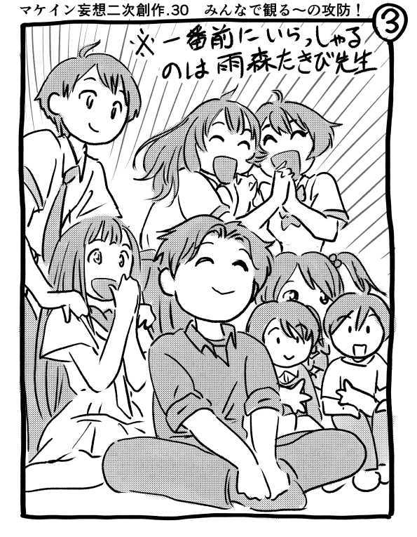 「一番前にいらっしゃるのは原作者の雨森たきび先生(絵は妄想)」
