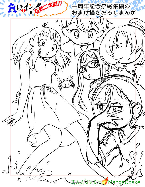 一周年記念の総集編まんがの、オマケまんがを考え中。